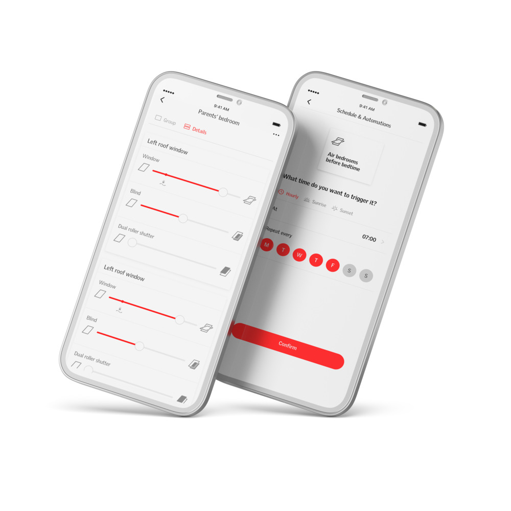 Mit der VELUX App Control können Sie alle Ihre elektrische oder solarbetriebene VELUX Produkte direkt von Ihrem Smartphone aus steuern. Öffnen und schließen Sie elektrisch und solarbetriebene Dachfenster, Rollos und Rollläden per Wischfunktion oder gruppieren Sie elektrische oder solarbetriebene VELUX Produkte für noch mehr Komfort.